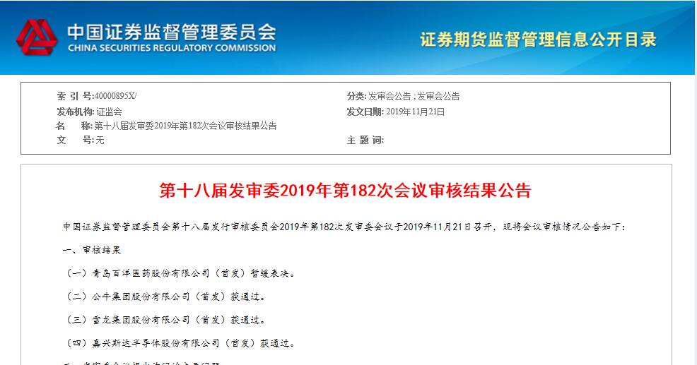 根据证监会网站消息,中国证券监督管理委员会第十八届发行审核委员会2019年第182次发审委会议于2019年11月21日召开,会议审核情况公告显示:嘉兴dcbox小金库半导体股份有限公司(首发)获通过。